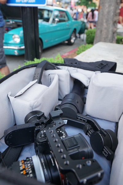 The perfect way to carry your gimbal around an event on your back. #ClassicCar show with an AirCross 2, Sony A7SII in a Nitze Camera Cage. Get a Gimbal Bag for $59.95 while supplies last.