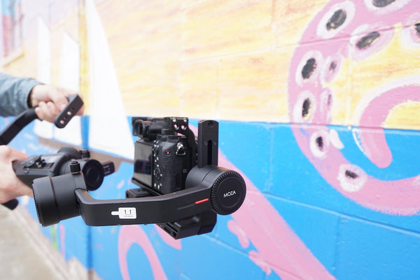 Under the sea with the MOZA Air 2 in an Octopus's Garden. The MOZA Air 2, just like your camera is weatherproof but not waterproof. Use a gimbal to stabilize your camera and film your favorite seaside mural. Featured is a Sony A7SII in a Nitze Camera Cage with the Mini Dual Handle.